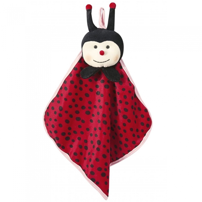 Naninha com Prendedor de Chupetas, Coleção Vélboa, Enxoval para Bebê, Composto por 01 Peça, Detalhe: Carinha de Joaninha, Cor Preto/Vermelho, Tecido: Vélboa.