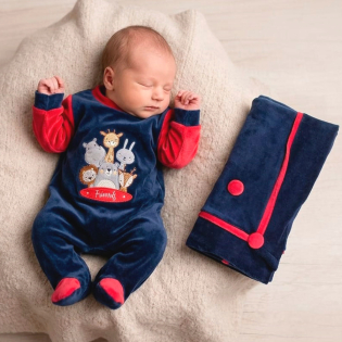 Prepare-se para o primeiro encontro mais especial da sua vida com a nossa Saída de Maternidade Amiguinhos da Selva. Este conjunto foi pensado para unir o toque extremamente macio do plush com um design moderno e alegre, garantindo que o seu príncipe saia do hospital aquecido e impecável. Macacão com pezinho fechado e abertura facilitada para trocas rápidas. Garanta o look do primeiro dia do seu grande amor.
