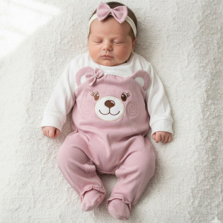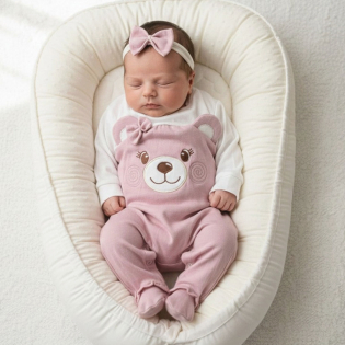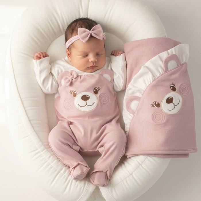 Saida de Maternidade Kids Ursinha Jade Rosê com Palha