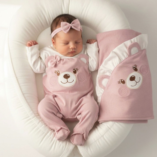 Acreditamos que o momento da maternidade é um dos mais importantes na vida de uma mulher. A escolha da saída de maternidade não poderia ser diferente, escolhe tudo com muita atenção em cada detalhe, pensando em proporcionar o máximo de conforto e estilo para sua princesa. E é pensando nisso que nós temos este lindo kit saída de maternidade. Nesse look escolhemos um Macacão Modelo Manga Longa com uma delicada faixinha de cabelo e a peça principal, uma manta para envolver sua bebê para que ela fique aquecida. Fechamento por botões de pressão para facilitar na troca de fraldas.