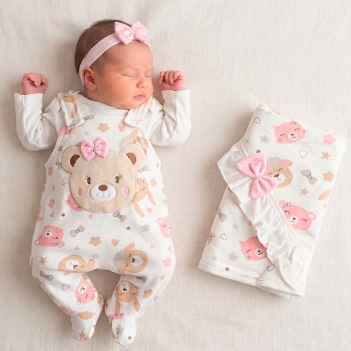 Acreditamos que o momento da maternidade é um dos mais importantes na vida de uma mulher. Por isso faz tudo com muito amor. E a escolha da saída de maternidade não poderia ser diferente, escolhe tudo com muita atenção em cada detalhe, pensando em proporcionar o máximo de conforto e estilo para sua princesa. E é pensando nisso que nós temos este lindo kit saída de maternidade. Nesse look escolhemos um Macacão Modelo Jardineira com Body Manga Longa, uma Manta para envolver sua bebê para que ela fique aquecida e uma linda faixa de cabelo. Uma saída de maternidade que foge do tradicional e não deixa de ser um luxo. Fechamento por botões de pressão para facilitar na troca de fraldas.