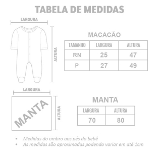 Essa saída de maternidade é uma ótima opção para sua princesa ser apresentada aos amigos e familiares. Neste look temos um delicado macacão manga longa com fechamento por botões de pressão entre pernas para facilitar a troca de fraldas, e complementando o look, uma linda faixinha de cabelo, e não podemos deixar de fora a manta que é a peça chave de toda saída de maternidade. Confeccionada em malha 100% algodão para manter sua bebê aquecida e confortável com estilo.
