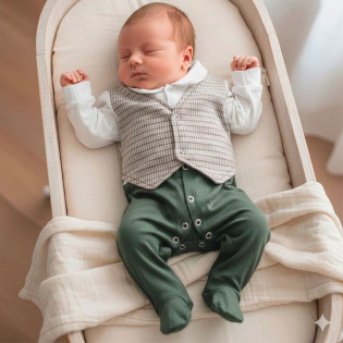 A chegada do bebê é um dos momentos mais especiais da vida, e essa saída de maternidade foi criada para tornar esse dia ainda mais inesquecível. Um conjunto sofisticado, atemporal e extremamente confortável, pensado especialmente para os primeiros dias do recém-nascido. ideal para quem busca elegância, delicadeza e versatilidade Macacão longo com fechamento por botões de pressão e com pezinho fechado, garantindo que o bebê fique sempre aquecido, Colete estilo social, com modelagem delicada e acabamento impecável e a Manta, ideal para envolver o bebê com suavidade e aconchego.