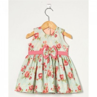 Vestido Iara, Enxoval Bebê Menina, Cor Poá Rosa/Floral, Detalhe de Laço na Frente, Disponível nos Tamanhos 1, 2 e 3, Tecido Tricoline 100% Algodão.