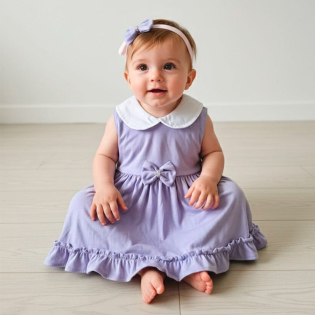 Vestido Verão, Enxoval para Bebê Menina, Composto por 02 Peças, Disponível nos Tamanhos P, M e G/1,2 e 3, Detalhe: Laço com Strass, Cor: Lilás. Tecido Malha 100% Algodão.